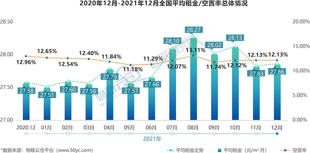 市场总结:12月全国通用仓储市场租赁需求有所下降;全国通用仓库新增供应有所下降;全国32个城市平均租金、空置率维持平稳。