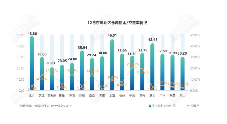 东莞平均租金变化最大,环比上升4.10%,主要因东莞的仓库租户以电商、第三方物流公司为主,“双十二”、圣诞、元旦等节日拉高了消费需求,东莞仓库租金有所上涨。